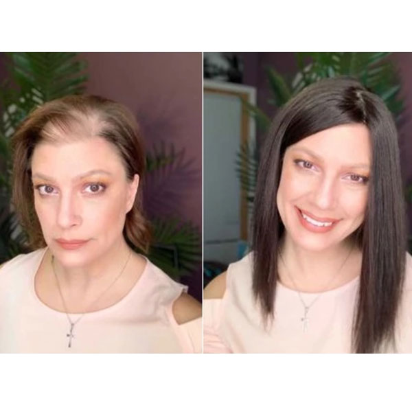Es una opción ideal para las mujeres que sufren alopecia androgénica leve a moderada o pérdida de cabello en la parte superior de la cabeza.
